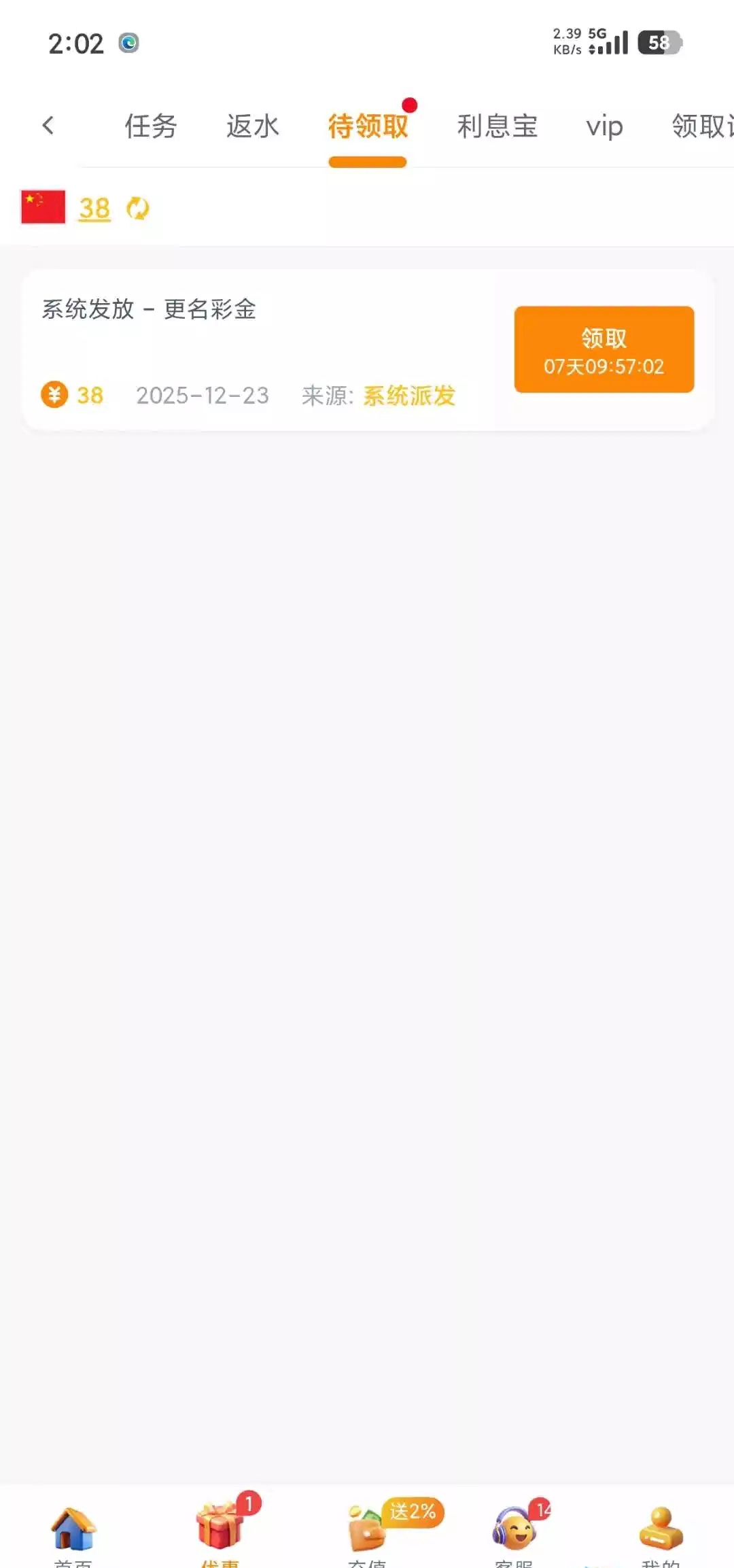 领到了58