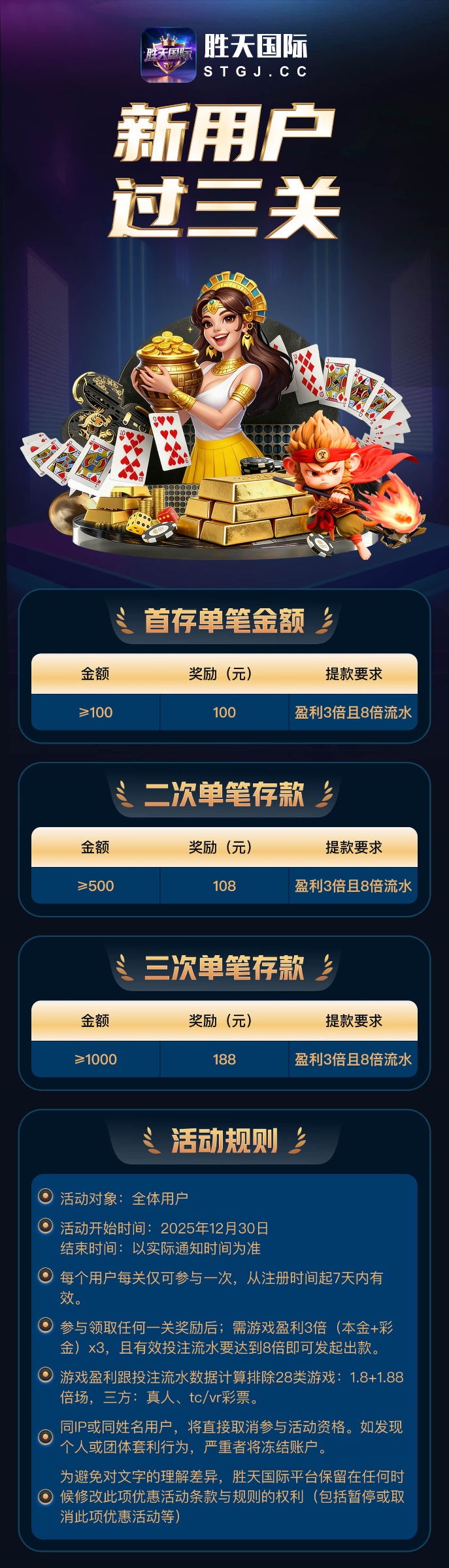 100+100即新用户过三关活动规则: