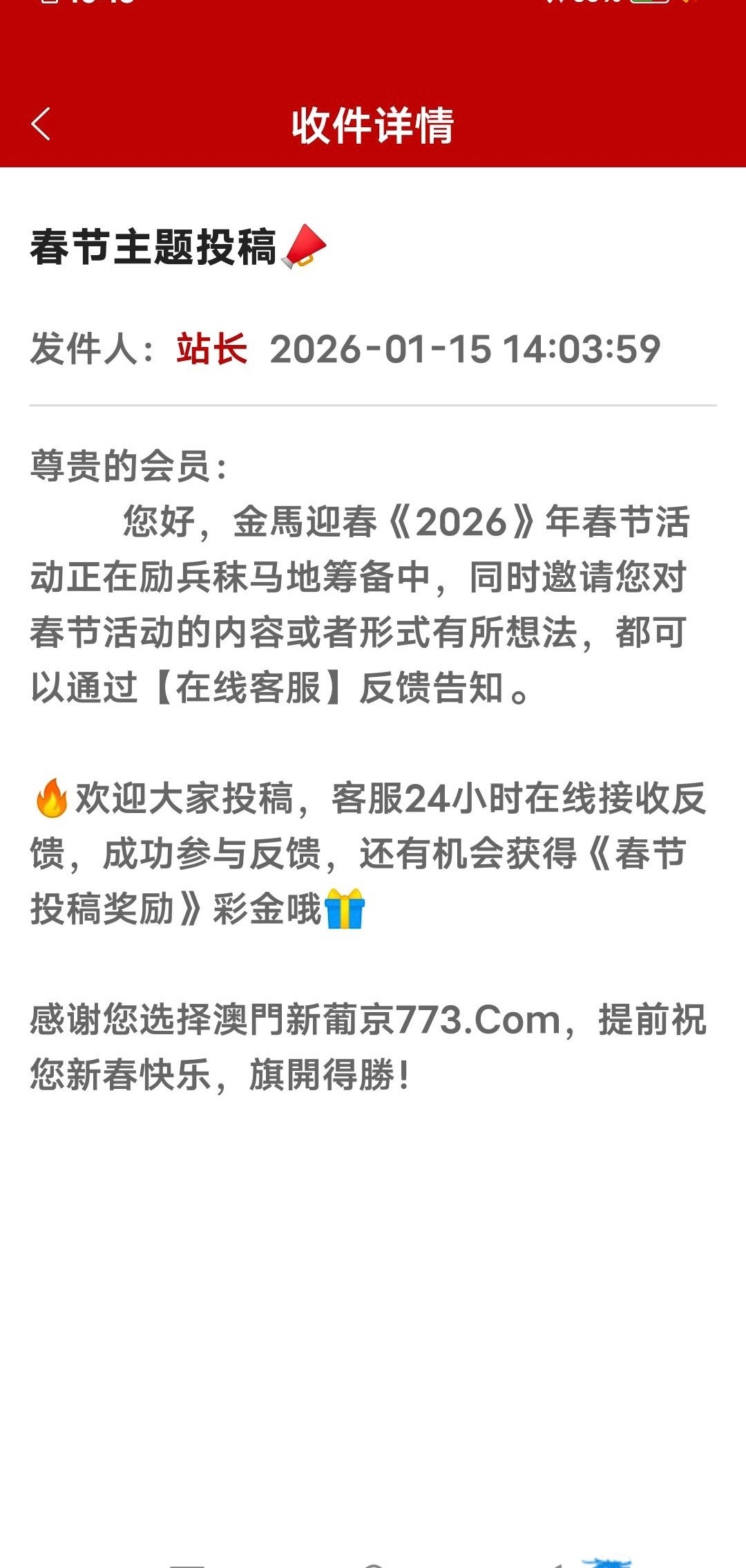 征集过年想法彩金已经发客服了,有你的想法,就有彩金